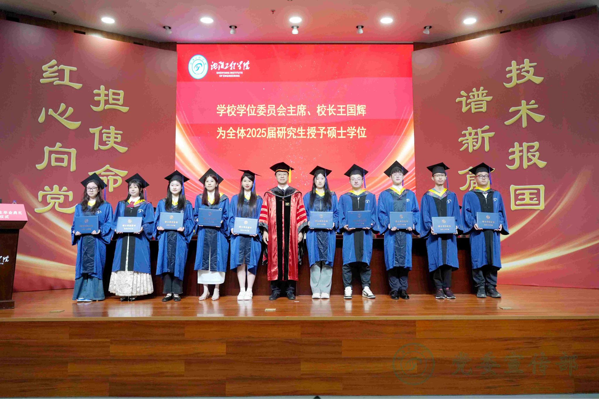 On the morning of May 30th, the graduation ceremony and degree conferral ceremony for the 2025 class of master's students at Shenyang University of Engineering was held in the lecture hall of the library.